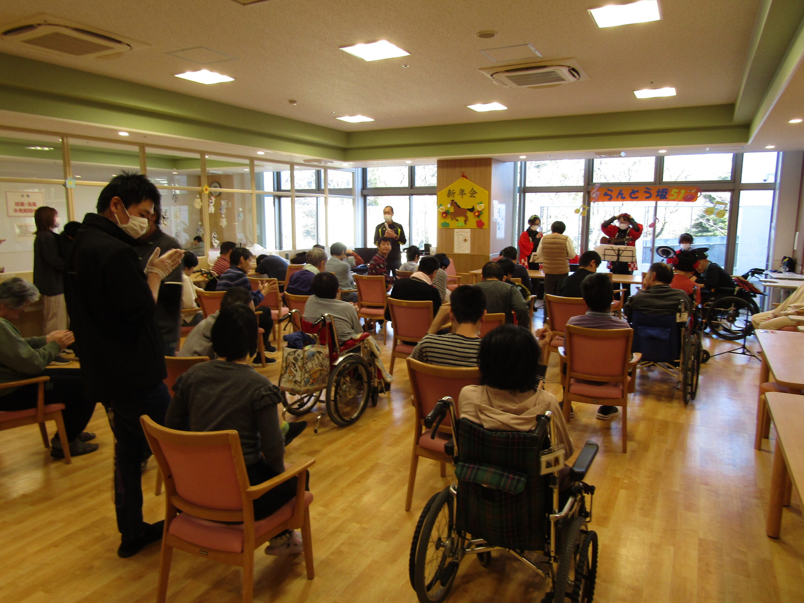 午前はプロの演奏家の方に来ていただきました。クラシックやアニメソング、クリスマスソング等の幅広い曲を演奏していただき大盛りあがり♪午後は【レクリエーション創作】として、くじ引きで引いた内容のパーツを画用紙に貼っていき、壁画完成させました。クリスマスの雰囲気を楽しむ1日中楽しむことができました。