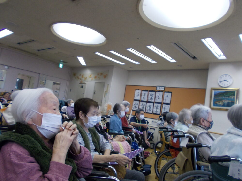 12月11日(木)に利用者忘年会行事を行いました。 当日のお昼ご飯では松花堂弁当と同法人内の前野福祉園のシフォンケーキが振る舞われました。テーブルいっぱいの豪華な食事にみんなで舌鼓を打ちました。利用者の皆さんからは「とても美味しかった‼」との声がたくさん聴かれました‼ また昼食後に行われたイベントでは、シンガーソングライターの方をお招きしたライブショーと今年の1月末に施 […]