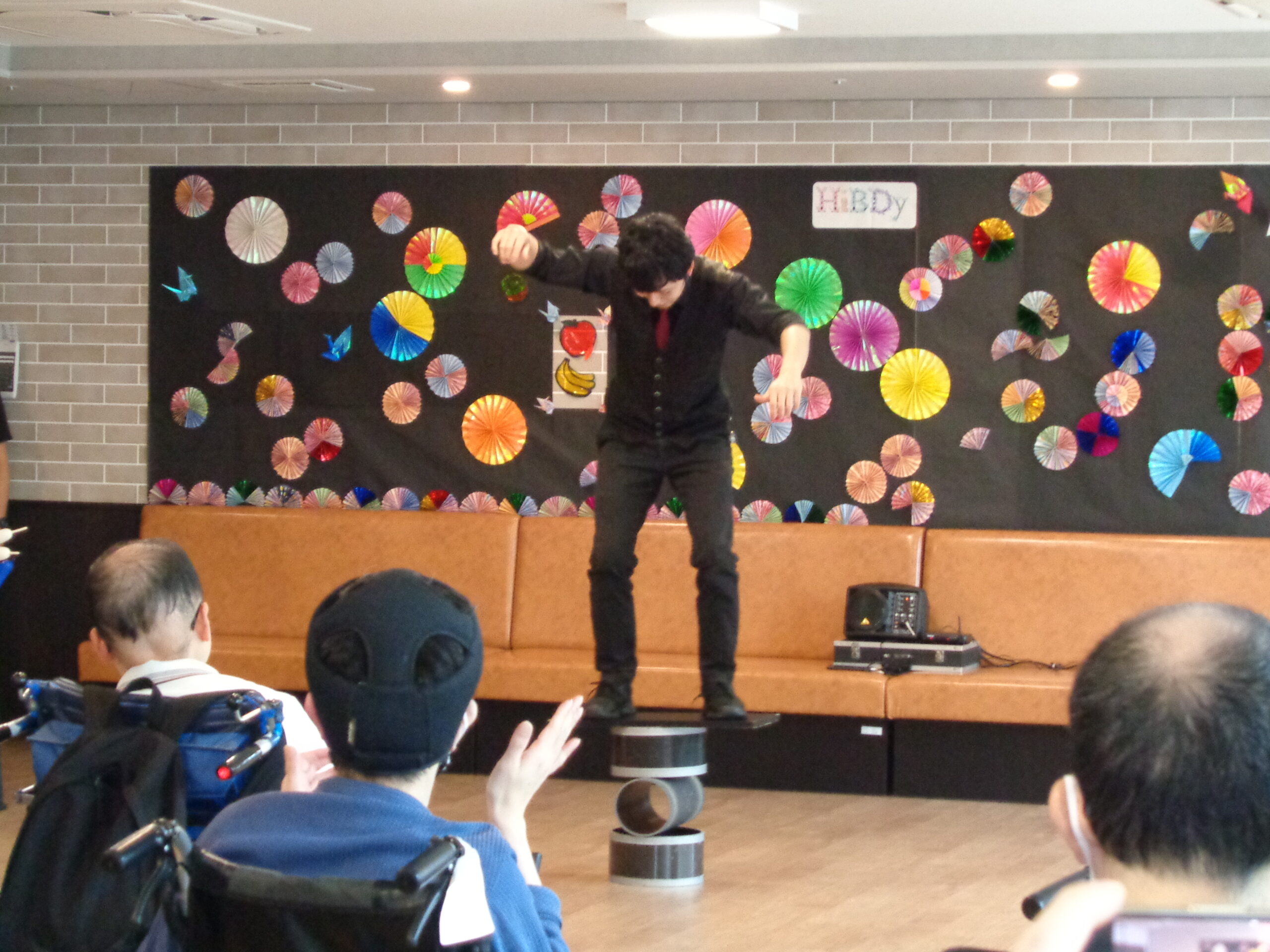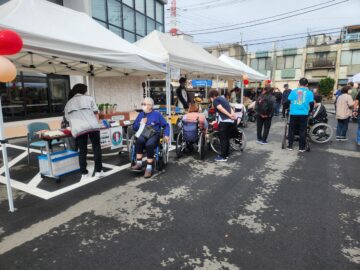 11月1日(土)、当施設の公開行事であるHīBDy祭りを開催しました。今回は6年ぶりの開催ということで、来場した皆様に楽しんでいただきたく、キッチンカー、近隣のベーカリー、施設等の出張販売、ゲームや訓練体験、音楽イベント等、多彩なプログラムを企画しました。職員だけでなく、入所者の皆様にも準備からお手伝いただき、手作り感あふれるお祭りとなりました。