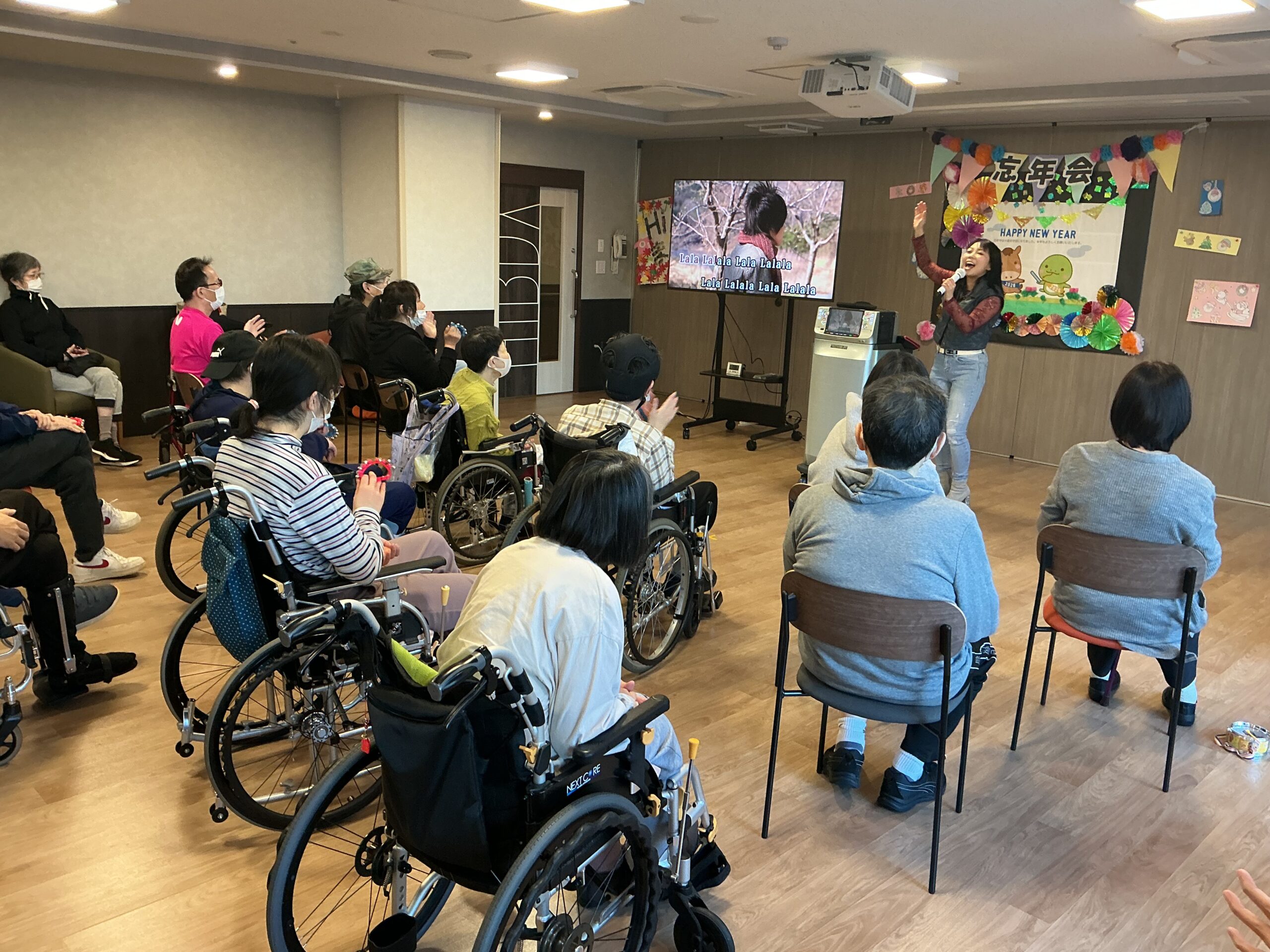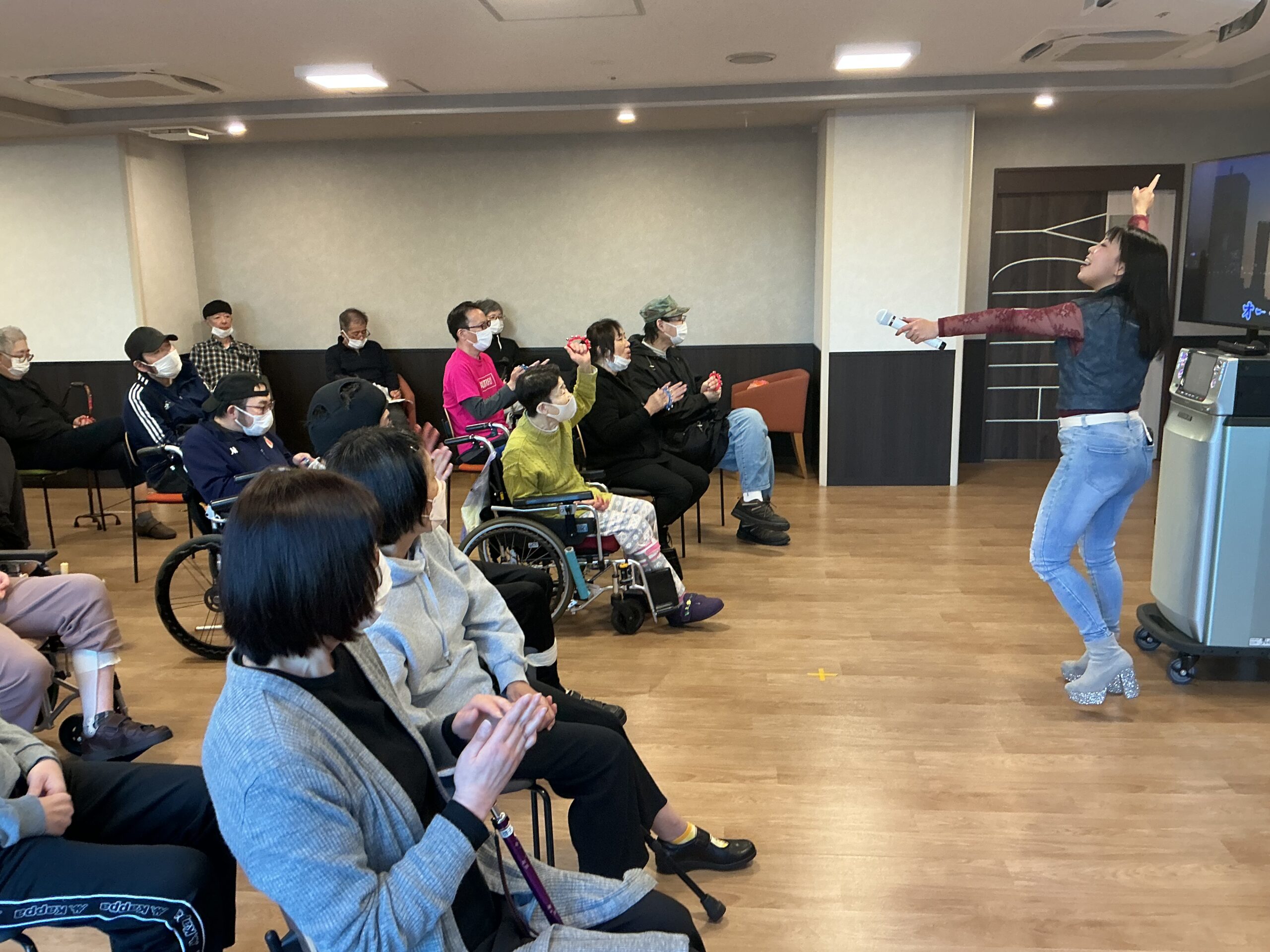ライブショーでは事前に利用者の皆さんへ歌のリクエストアンケートを実施し、その中から歌唱していただきとても盛り上がりました‼トークショーでは今年実施した行事の装飾などを用いて、様々な思い出や感想をみんなで共有しアットホームな雰囲気に包まれました。