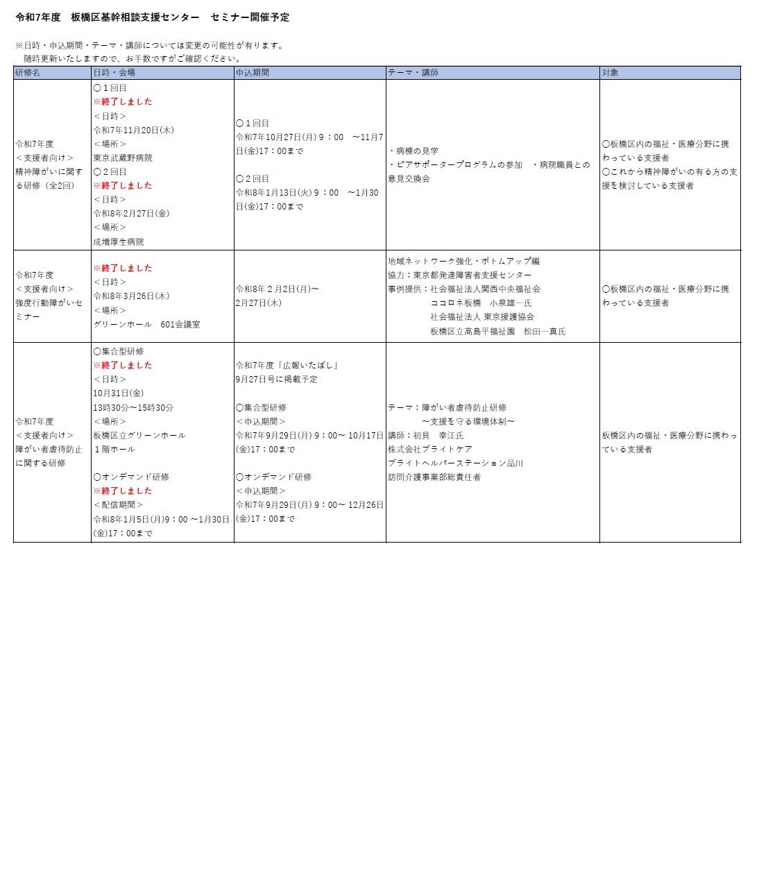 板橋区基幹相談支援センターでは、専門的人材の確保・養成に向けたセミナーを昨年度に引き続き開催いたします。