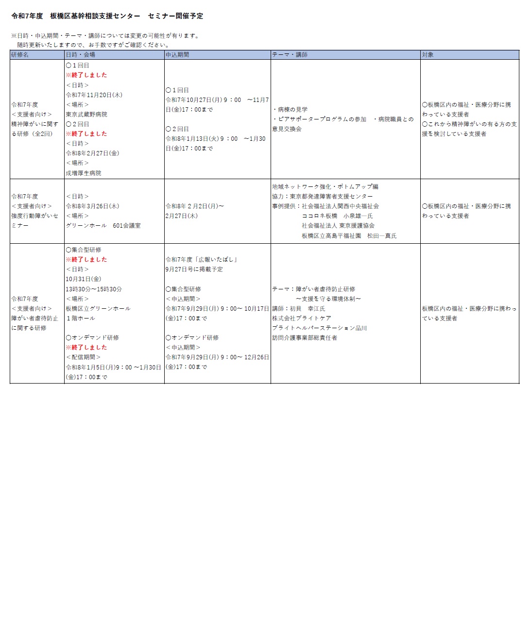 板橋区基幹相談支援センターでは、専門的人材の確保・養成に向けたセミナーを昨年度に引き続き開催いたします。