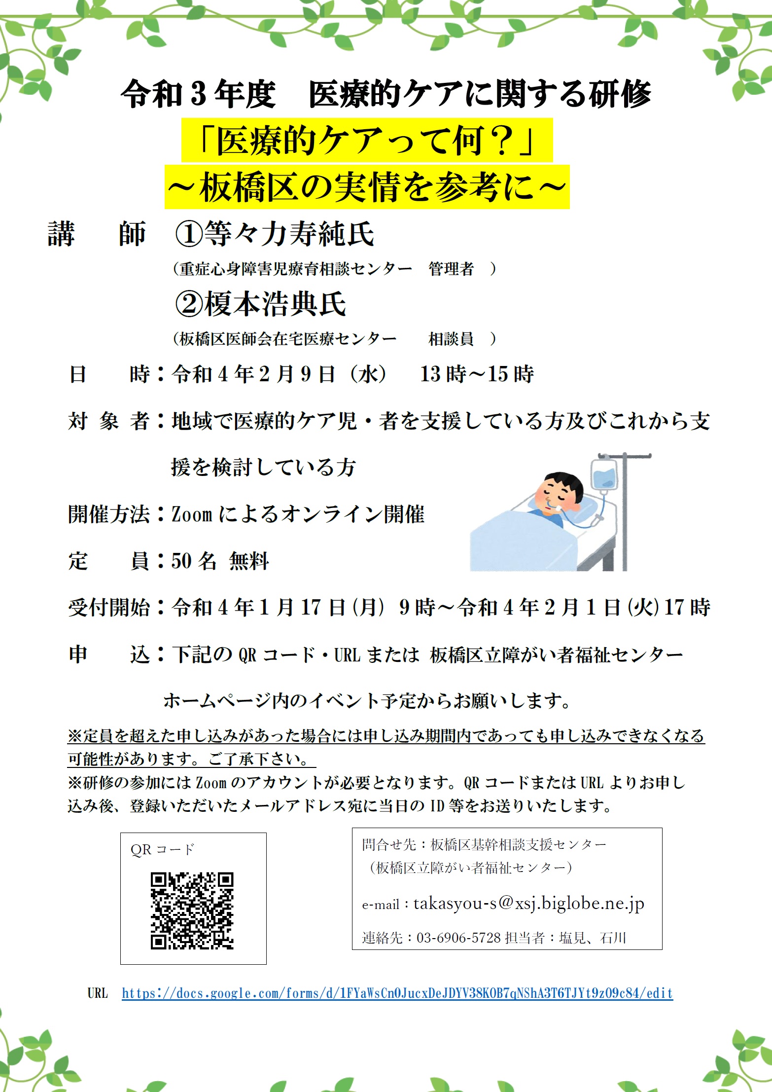 参加希望の方は、QRコード又はURLよりお申し込みください。登録いただいたアドレスに当日のID等をお送りいたします。