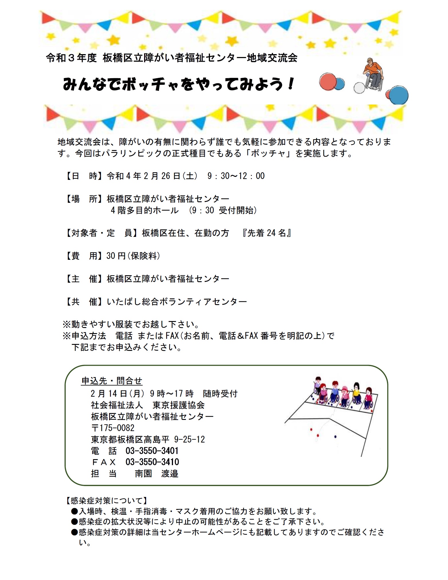 令和3年度 地域交流会ボッチャを下記の日程で開催いたします。