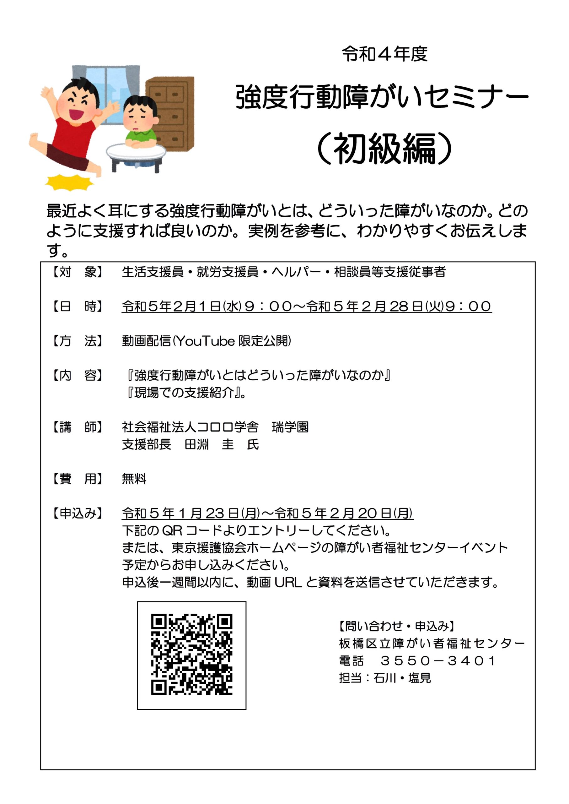 区内支援者向け、強度行動障がいセミナーの動画を配信します、