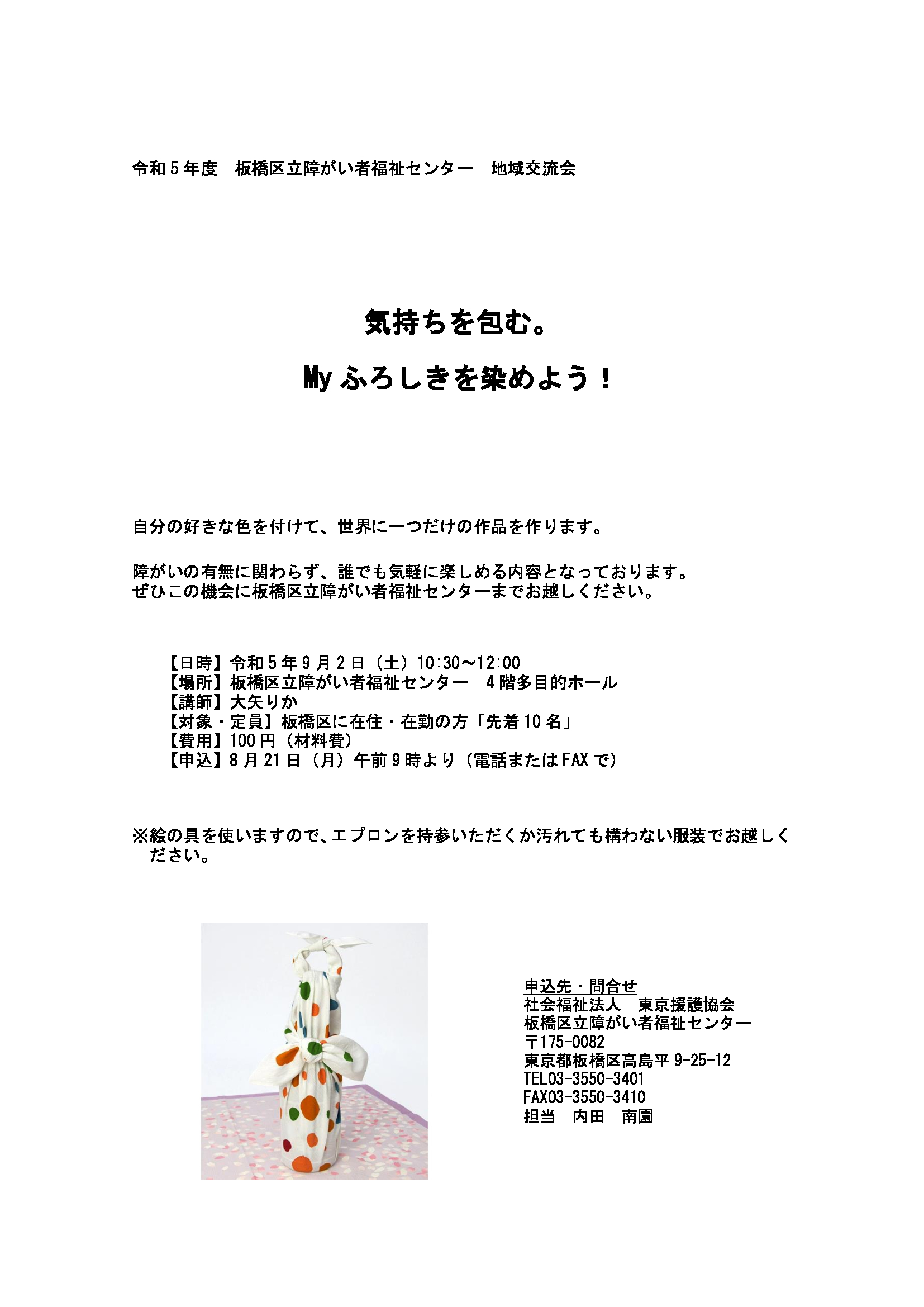 令和5年度 地域交流会 工作「風呂敷作り」を下記の日程で開催いたします。