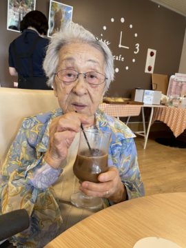 高島平福祉園分場にある喫茶サンジュに出掛けてきました。同じ法人内という事もあり、事前に連絡を取り合い、コロナ感染予防対策をしっかり行うことで、実現出来ました。利用者の皆さんは、久しぶりの外出ということで、とても気分が上がって喜ばれていました。