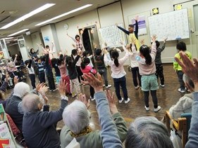 1月23日(月)蓮根保育園との交流会がありました。 園児たちの元気で可愛い姿に皆様ニコニコ!! 一生懸命に出し物をしてくれたり、純粋な子どもたちを見ていると利用者の方だけでなく、ボランティアさん、職員もジーンとくるものがありました。 また、会える日を約束して一日を終えました!!