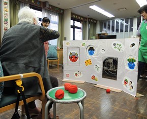 ストラックアウトのような的当てを皆さんで楽しみました。