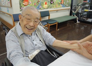 三日間の祝善と『「あの頃の私」写真展』と題しましてスクリーンを使いスライドショーでご利用者様と職員の若かりし頃や当時の時代背景を懐かしみ、「ふれあい」をテーマにハンドマッサージを行いました。