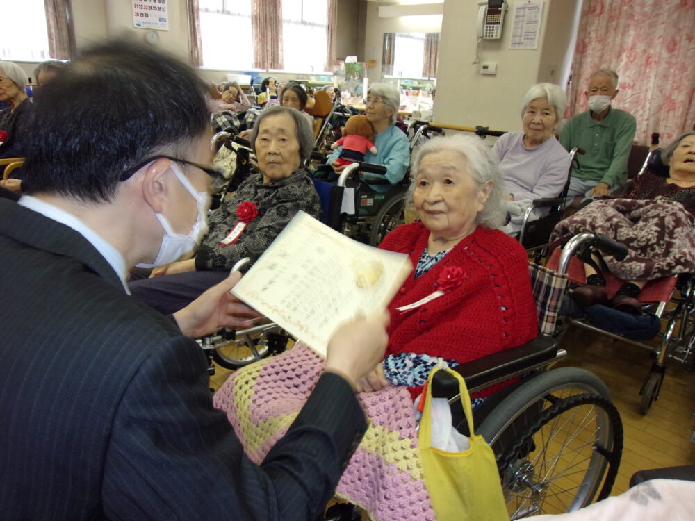 お祝い対象者の方には、谷口施設長より賞状が渡されました。