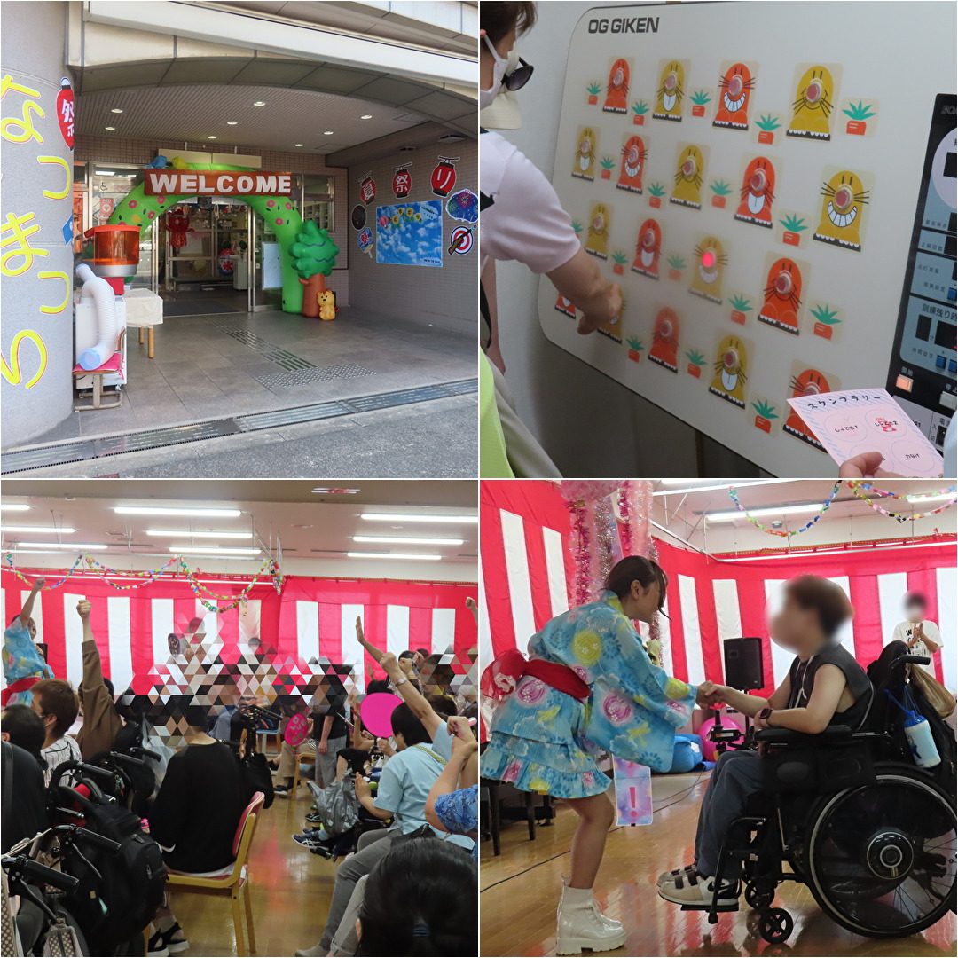 7月28日(金)に小豆沢福祉園の夏まつりが開催されました。千本つりなどのゲームコーナーや模擬店、盆踊りなどの催し物を、皆さん笑顔で楽しまれていました。 勇音太鼓さんによる演奏では、大いに盛り上がりました。
