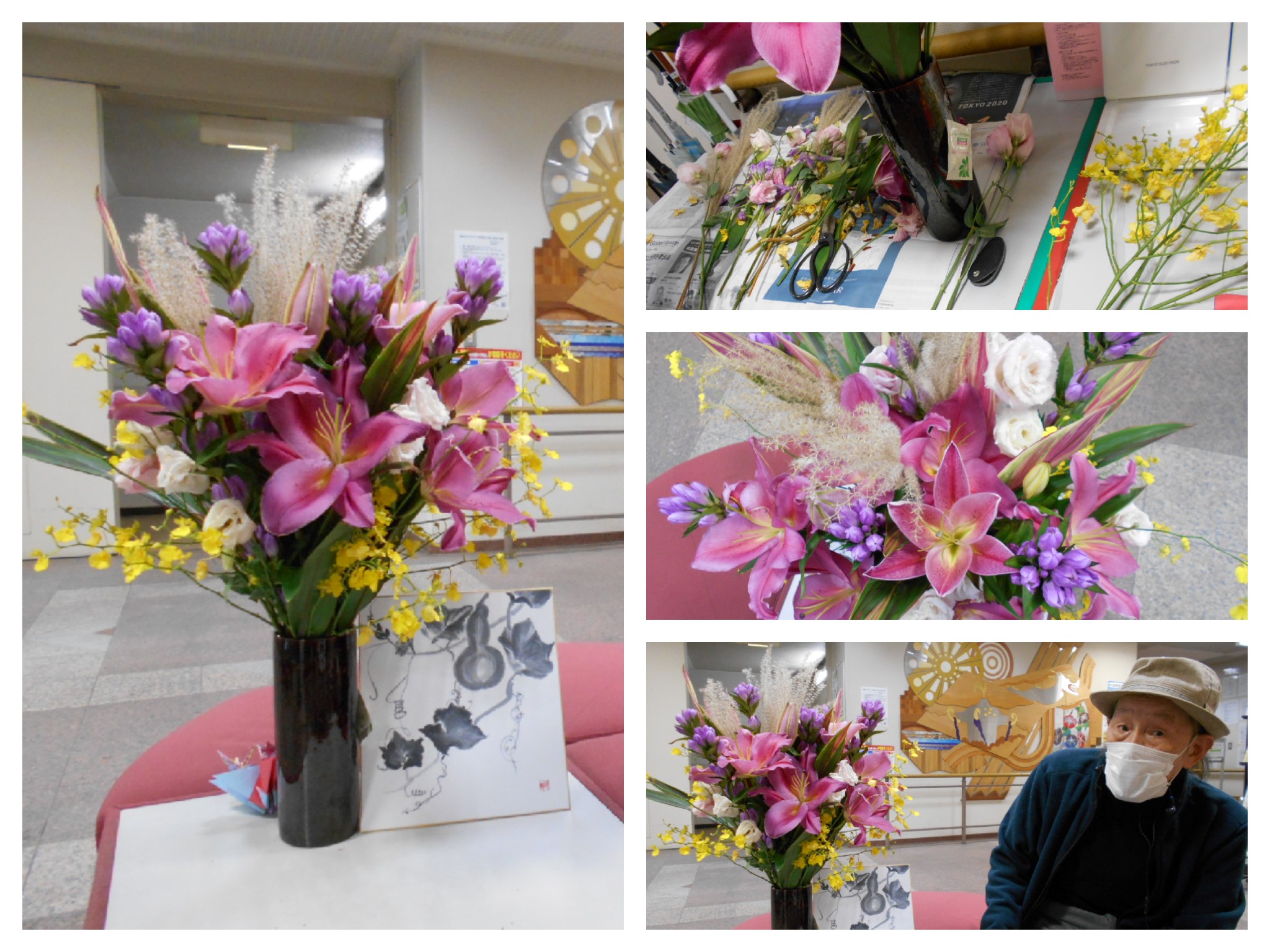 お花は絵や折り紙など他のご利用者様の作品と一緒に、