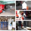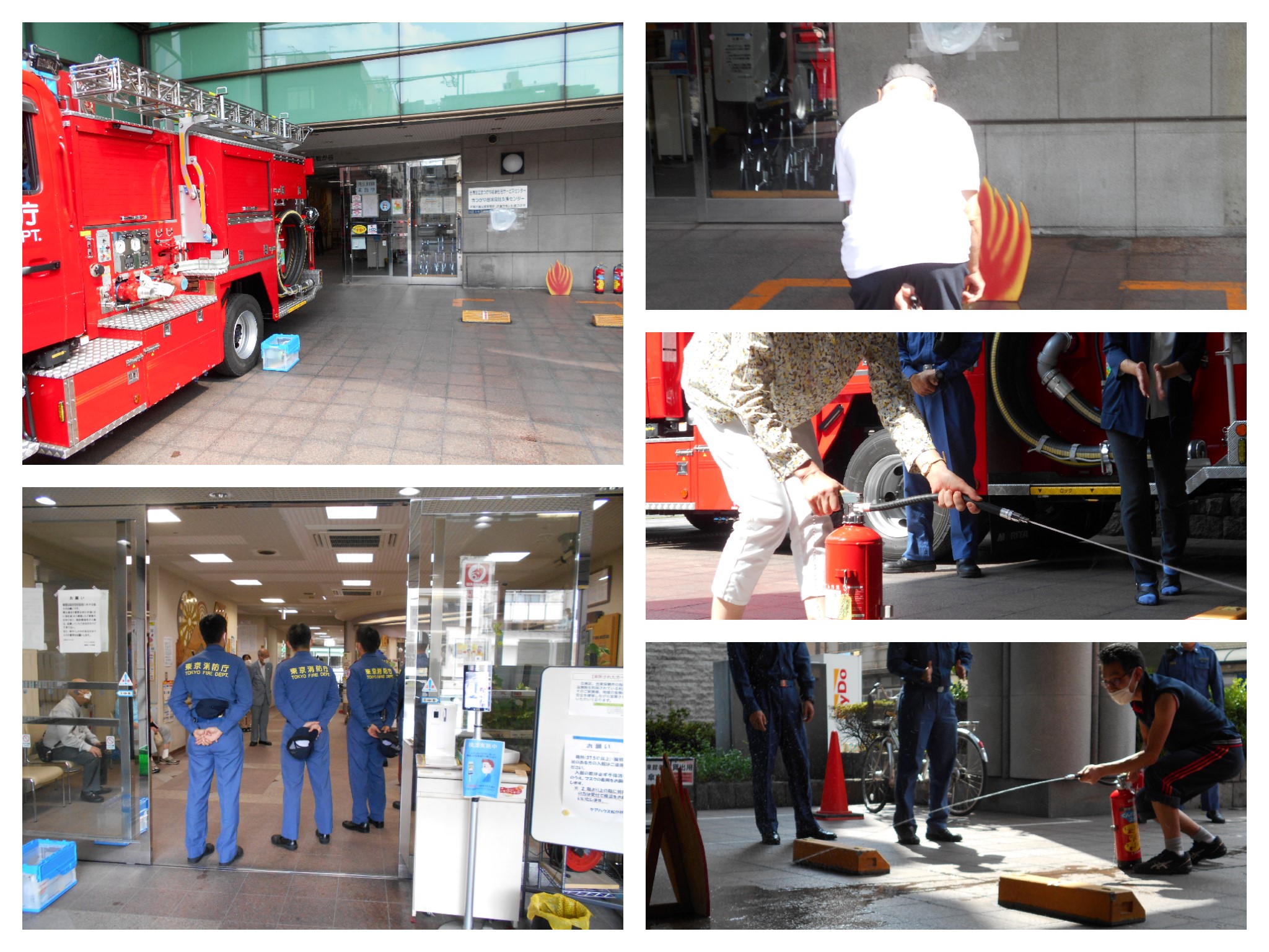 (水消火器を使った初期消火訓練)