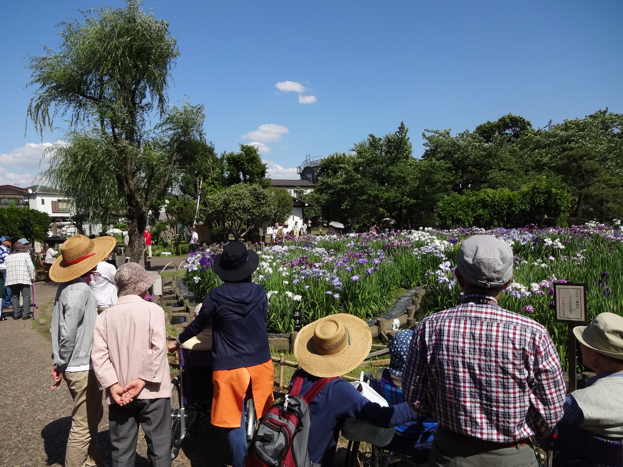 たくさんの人達が菖蒲を見に来ていました。利用者さん達も、きれいな菖蒲に感動してい