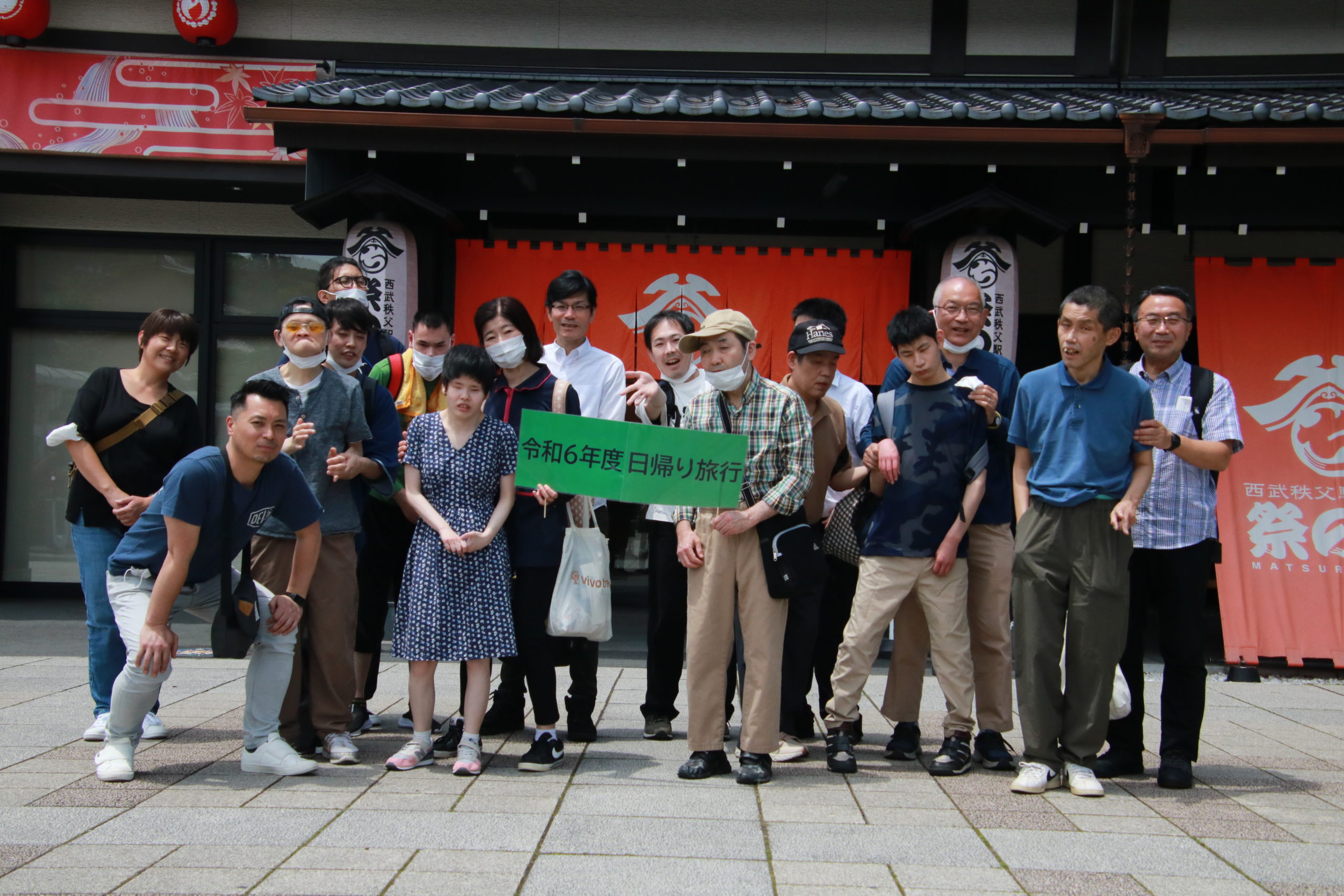 利用者さん8名と職員12名を乗せたバスは秩父駅前にある「祭りの湯」へ向かい、温泉ではのんびりとしたひと時を過ごすことができました。