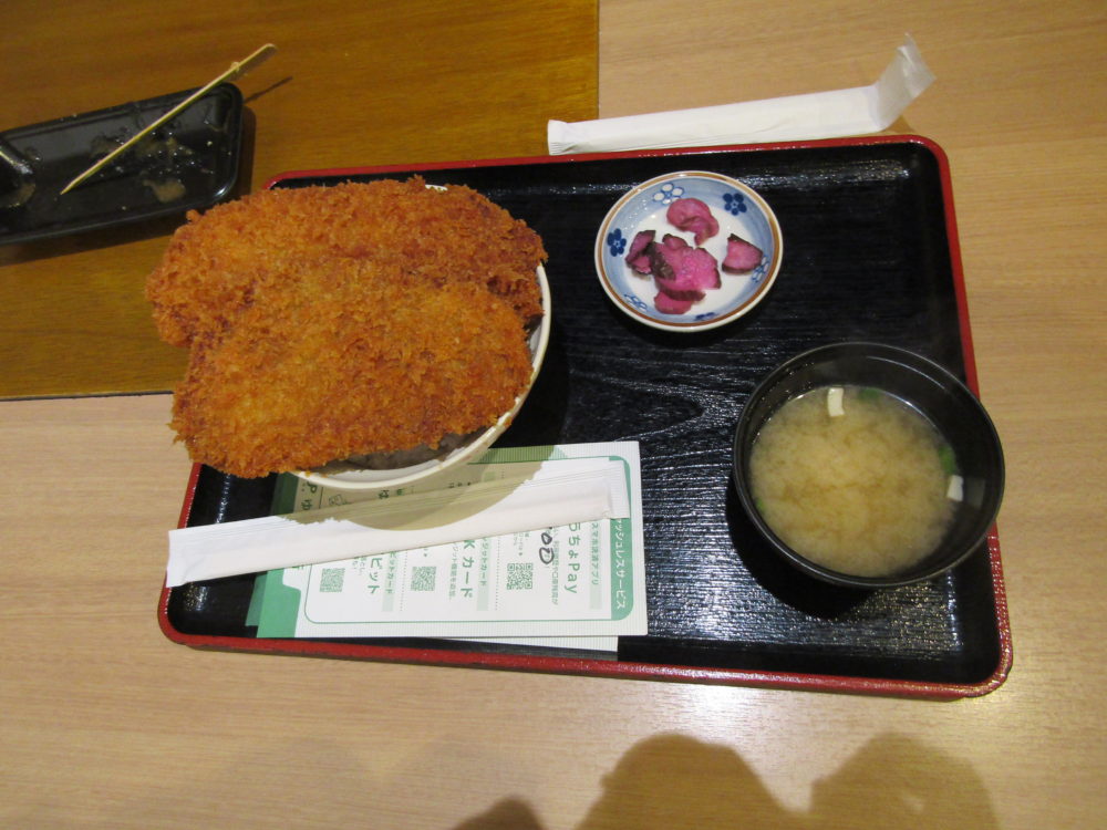 昼食で利用したフードコートでは、名物の「わらじカツ丼ぶり」や「炙り豚丼」などを味わうこともできました。