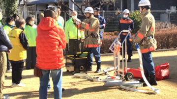 令和6年2月3日 直下型地震等で区に災害本部が設置された場合を想定した地域防災協定に基づく、災害時における地域と施設との相互支援を目的とした合同訓練を開催しました。スタンドパイプ・水消火器訓練、起震車体験訓練、救護訓練などを行い、いつ来るかわからない未曽有の災害に備えた訓練となりました。