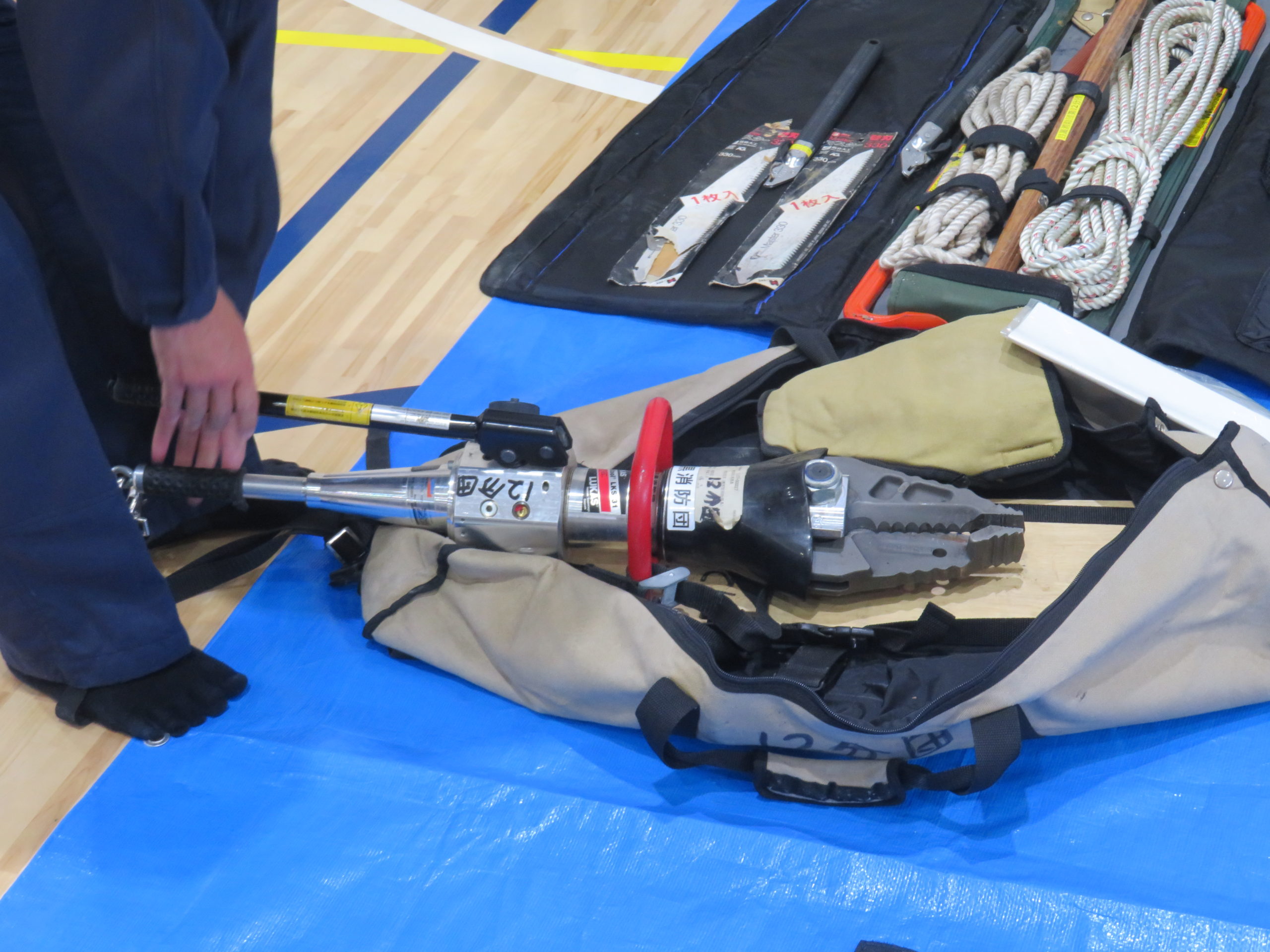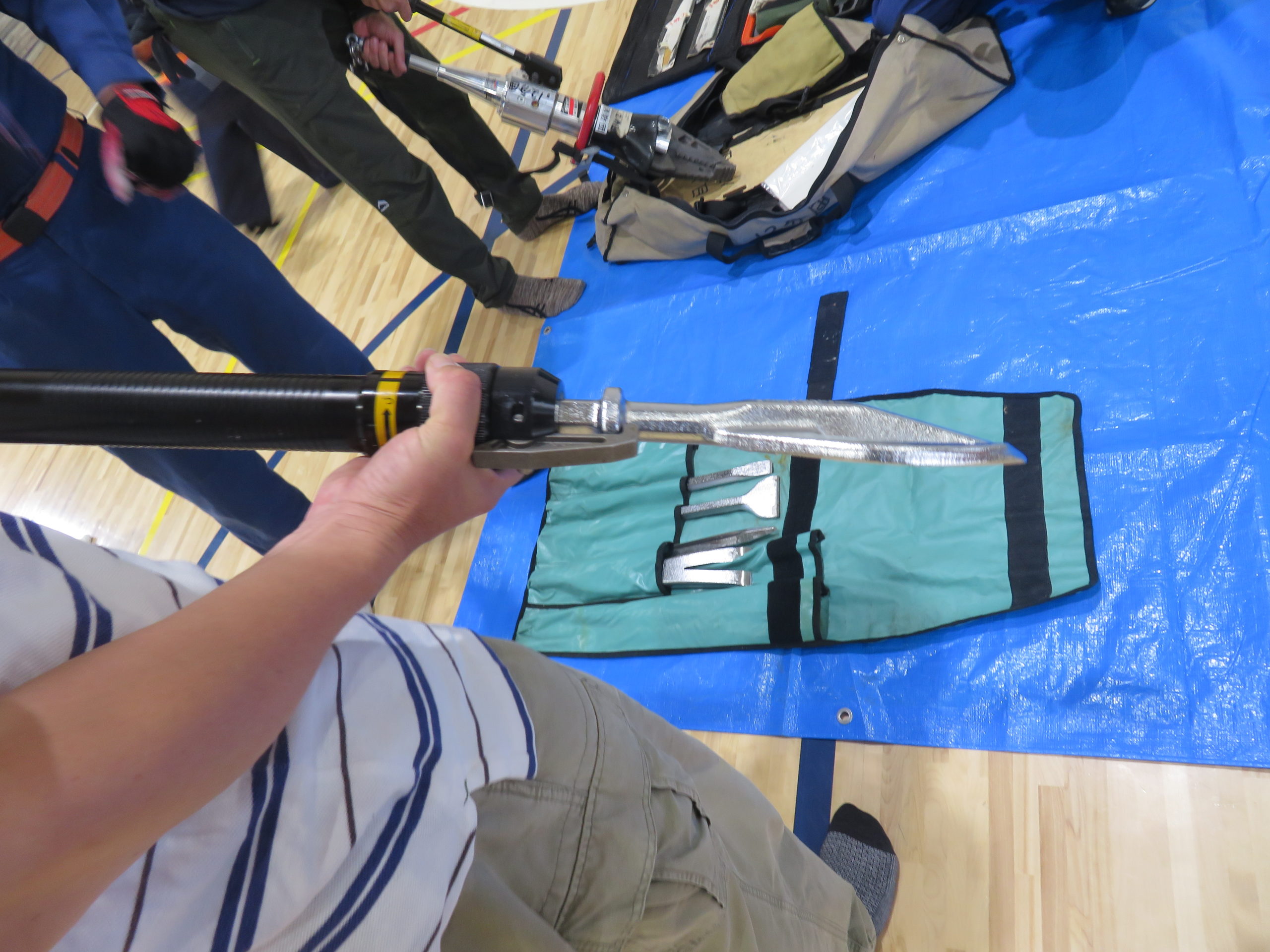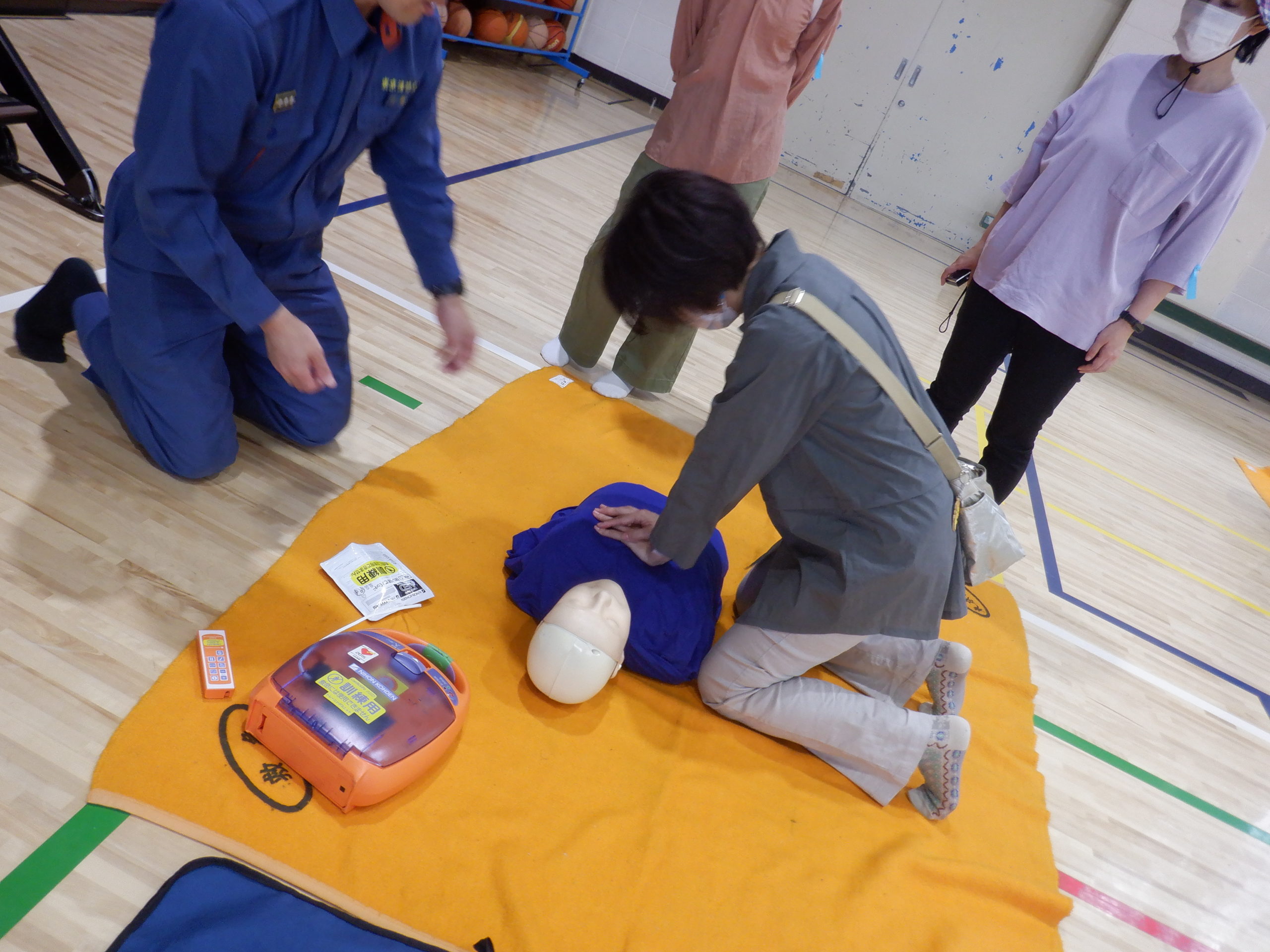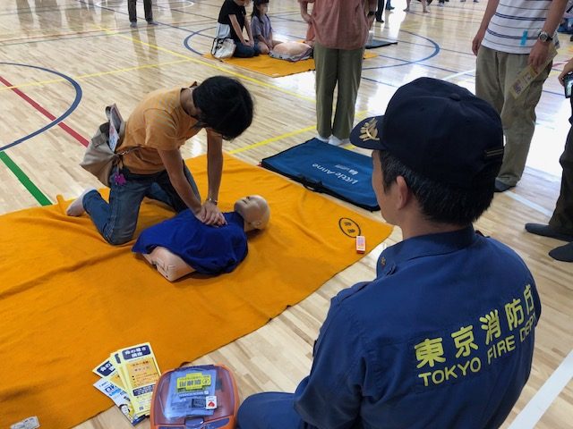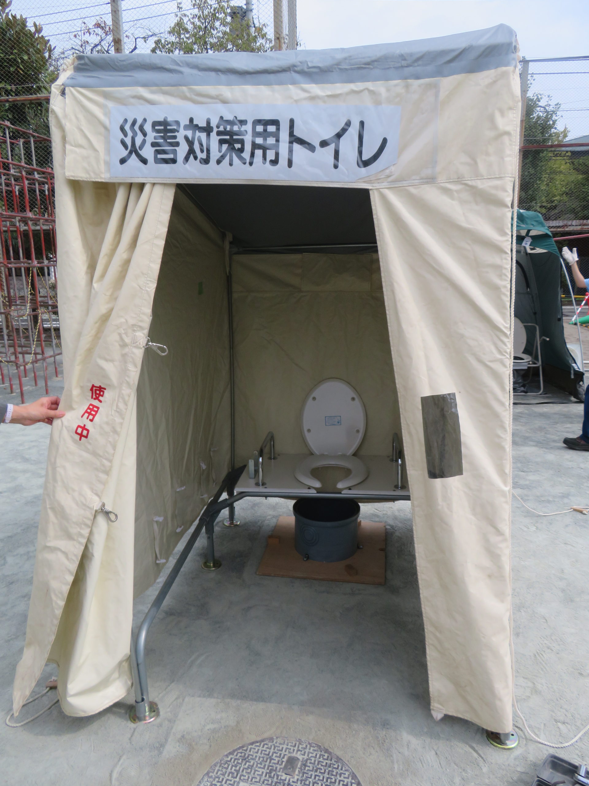 災害用マンホールトイレの設置、起震車、AEDや災害用救助用具など様々な防災備品の見学、体験を行ってきました。