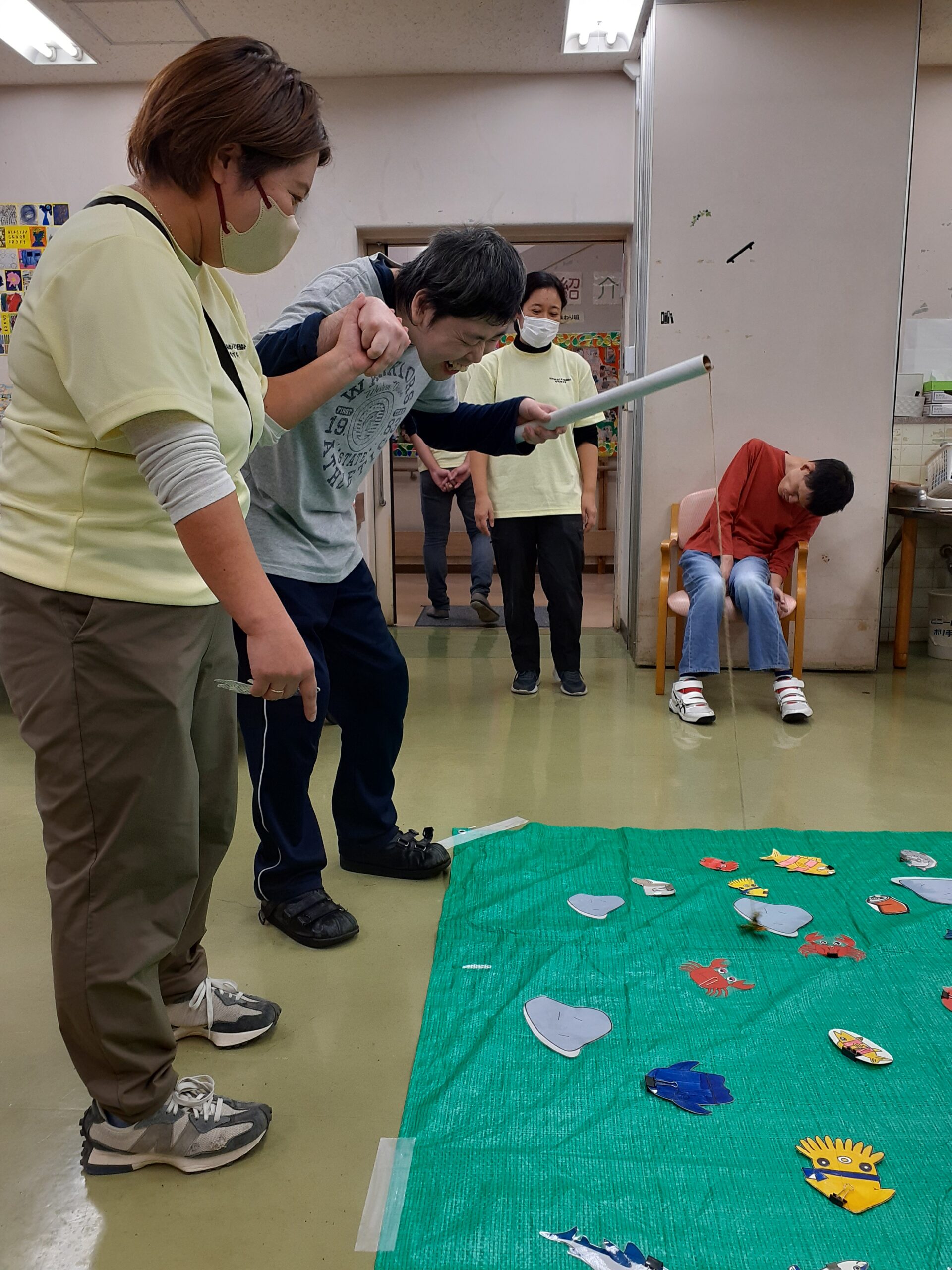 利用者の方々は、普段と異なる雰囲気のためか、いつも以上に楽しそうに気力十分なご様子で運動や作業などの活動に取り組まれていました。