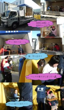 11月26日に、三園福祉園駐車場にて、防災学習の一環で起震車・煙体験ハウスを行いました。