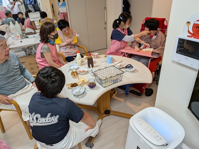 たこ焼きを焼く「タコ焼き奉行」職員たちは、利用者さんの「おかわり!」笑顔に、嬉しい大忙しでした。